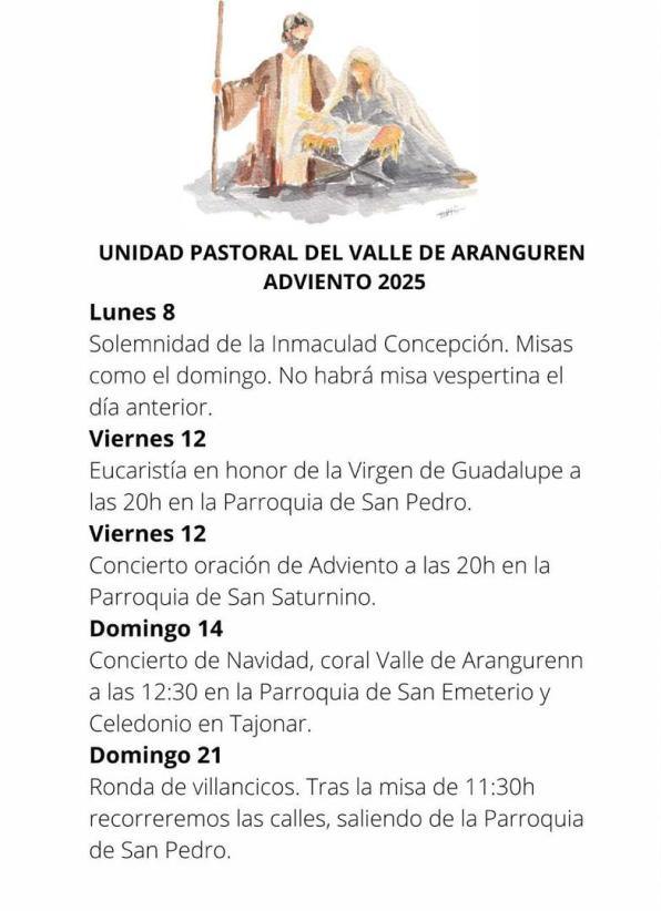El próximo viernes 29 de Noviembre celebraremos la festividad de San Saturnino, con una misa a las 12,30 h. en la Iglesia de San Satunino, en la que nos acompañará la Coral Valle de Aranguren. Tras la misa tendremos un aperitivo de confraternización.